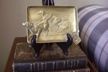 This brass ashtray was purchased from an antique store that has since gone out of business. I love the way the dog extends beyond the edge.