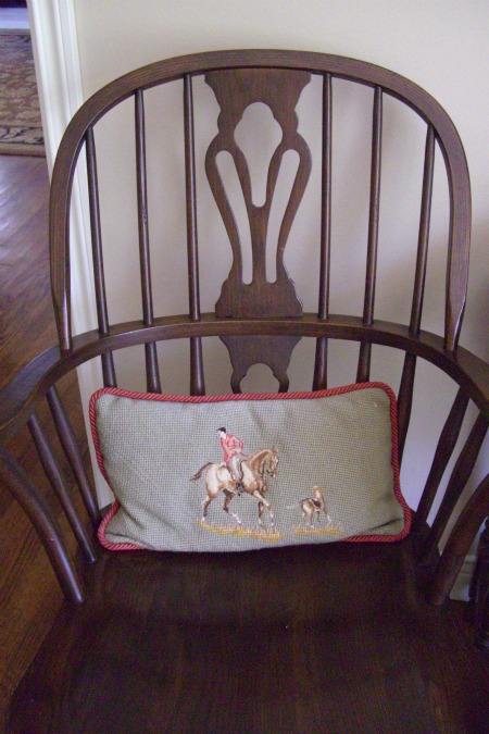 Years ago I needle-pointed this pillow, love the hunt image.